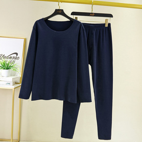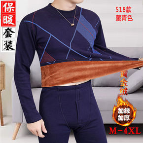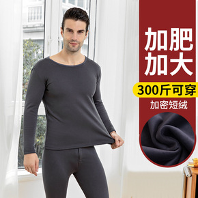 冬季加厚保暖内衣男士秋衣秋裤套装加大加肥圆领加绒加...