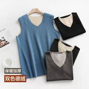双色德绒无痕背心男秋冬加绒加厚大码男士保暖背心内穿...