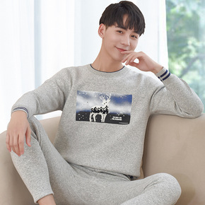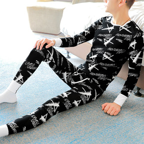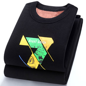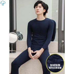 韩版加绒加厚男士大A保暖内衣套装时尚潮男修身护膝毛...