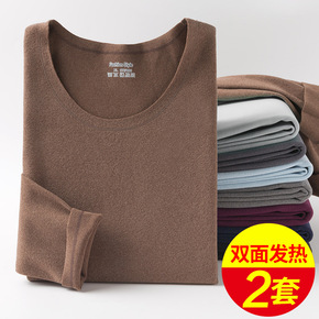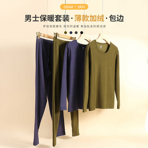 男士保暖内衣套装修身秋衣秋裤青年加绒加厚双面德绒发...
