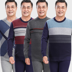 男士保暖衣保暖内衣男套装加绒加厚中老年冬季中低领秋...