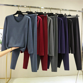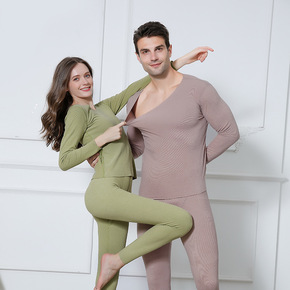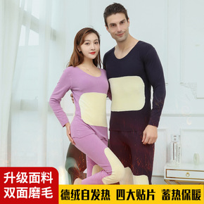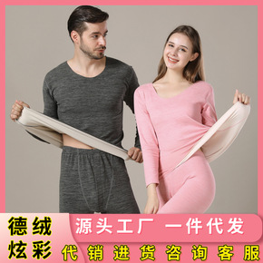 批发新款炫彩德绒保暖内衣情侣套装加绒加厚男士女款自...