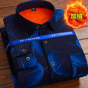 2021秋冬男士加绒加厚长袖保暖衬衫格子印花休闲衬...