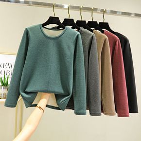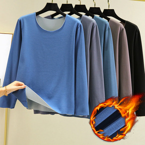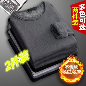 男长袖保暖内衣加绒加厚t恤圆领修身打底衫男纯色内搭...