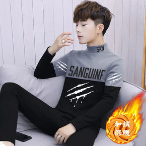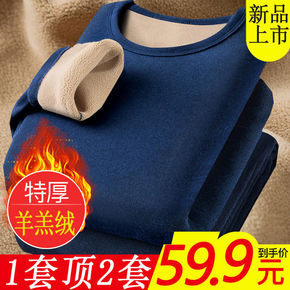 加绒加厚男士保暖内衣套装男羊羔绒秋衣秋裤冬季修身打...