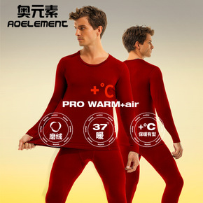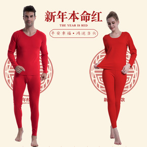 德绒男女士无痕阳离子保暖大红色内衣套装本命年加厚过...