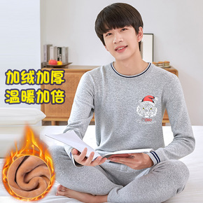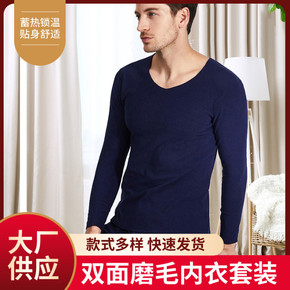 秋冬新款男士加绒加厚保暖内衣舒绒长袖双层提花时尚内...