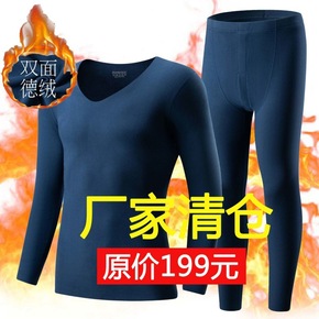 德绒保暖内衣男士加厚加绒冬季蓄热秋衣秋裤男套装打底...