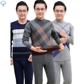 冬季中老年保暖内衣男加绒加厚套装高领秋衣秋裤爸爸装...