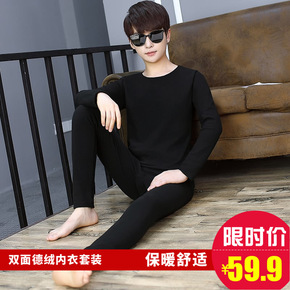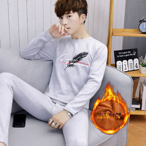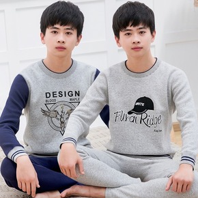 男士保暖内衣加绒加厚一套青少年初中生棉秋衣秋裤冬季...