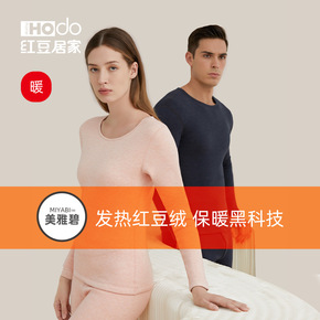 【发热】红豆加绒加厚内衣色纺男女士含桑蚕丝贴片中老...
