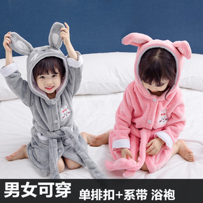 儿童睡袍法兰绒女童浴袍珊瑚绒中小童宝宝加绒男童卡通...