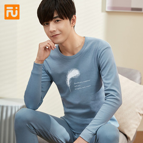 秋衣秋裤男纯棉薄款青年打底全棉保暖内衣套装男士棉毛...