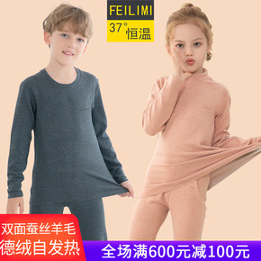 儿童内衣套装双面绒无骨AB面四针六线中小童保暖内衣...