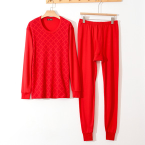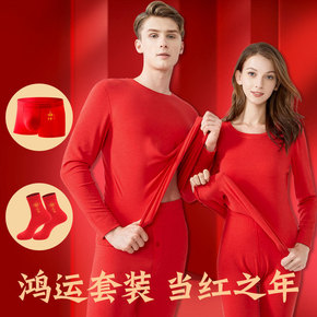 本命年秋衣秋裤男套装纯棉红色福字中老年棉毛衫虎年女...