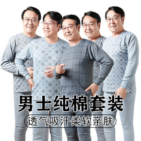 棉男士秋衣秋裤套装男中青年保暖内衣秋冬季中老年打底...