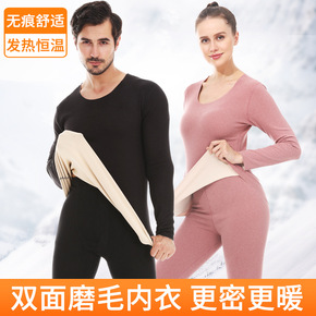 男士女士情侣德绒蚕丝保暖内衣套装无痕AB面保暖秋衣...