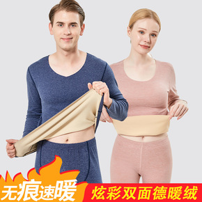 俞兆林双面磨绒无痕发热内衣套装女士男士秋衣秋裤 德...