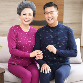 中老年人秋衣秋裤女套装全纯棉春秋薄款老人保暖内衣男...