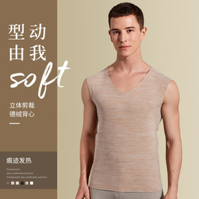 德绒男士恒温保暖内衣 秋冬季高弹贴身加绒背心双面发...