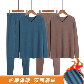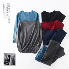 炫彩螺纹德绒保暖内衣男2021秋冬新款v领无痕保暖...