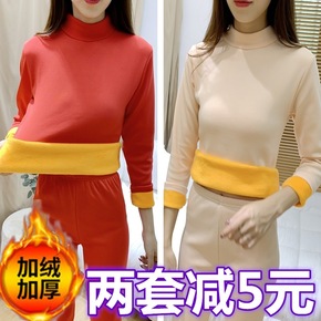保暖内衣女加绒加厚秋衣秋裤高初中学生少女半高领打底...