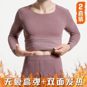 德绒无痕保暖内衣男士套装加厚加绒自发热纤维冬季青年...
