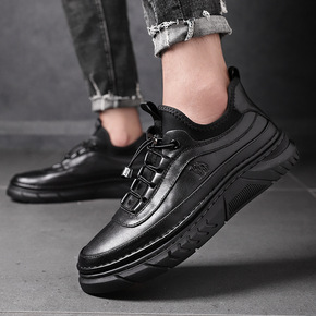男鞋新款秋冬季透气男士商务休闲皮鞋男真皮软皮软底中...