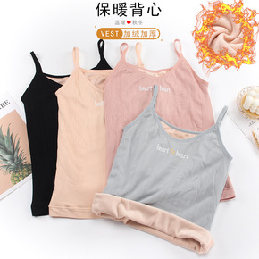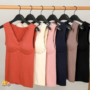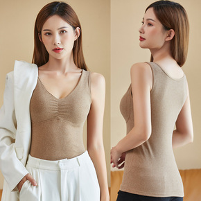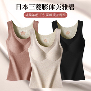 蚕丝美雅碧保暖内衣女带胸垫修身圆领打底背心文胸一体...