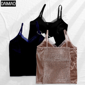秋冬新款金丝绒保暖美背裹胸内衣女带胸垫蕾丝外穿内搭...