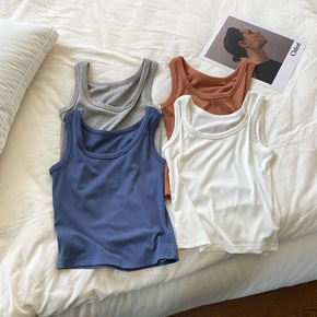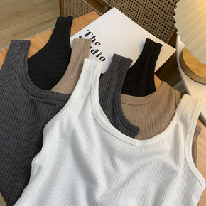 2022夏季百搭纯色弹力螺纹棉背心女韩版短款修身显...