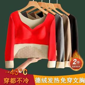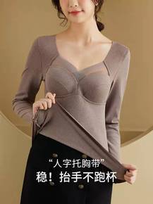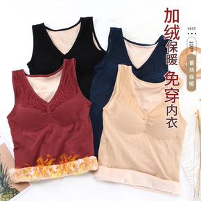 无痕德绒带胸垫背心女士双面加绒加厚发热上衣保暖内衣...