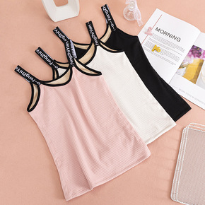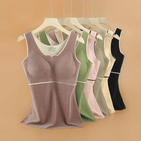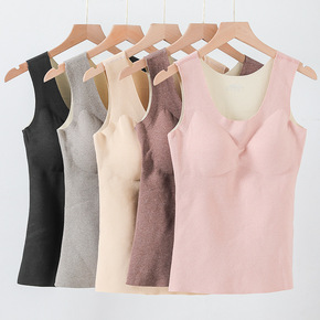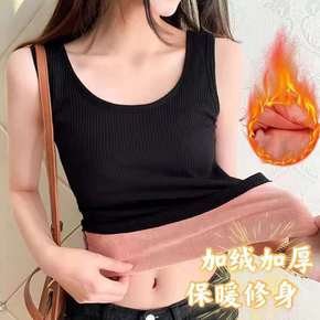 新款秋冬季螺纹加绒保暖背心女 加厚带胸垫免穿文胸修...