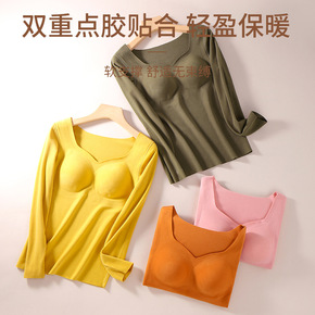 温感渐变保暖背心女士加绒加厚带胸垫长袖德绒低领内穿...