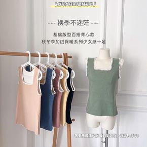 秋冬季AB面方领保暖加绒加厚背心外穿内搭修身打底无...
