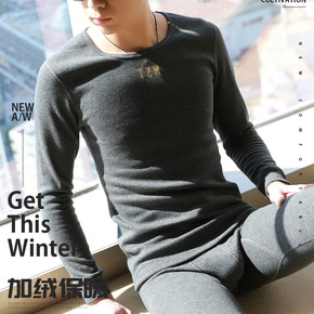 潮流男士加绒加厚保暖套装护膝护腰冬季线衣线裤贴身棉...