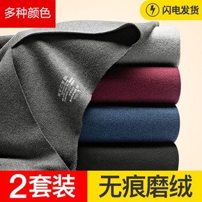 无痕德绒保暖内衣男加厚加绒自发热蚕丝贴片男士秋裤秋...
