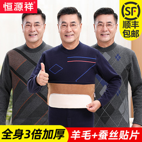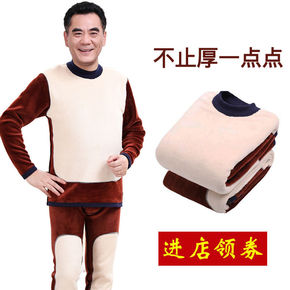中老年人保暖内衣男士双层贴片加厚加绒秋衣秋裤爸爸领...