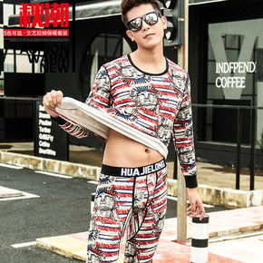 华杰龙新款印花男士加绒加厚不倒绒暖甲修身保暖内衣套...