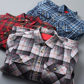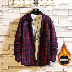 加绒衬衫男士长袖冬季格子外套磨毛棉休闲工装加厚外穿...