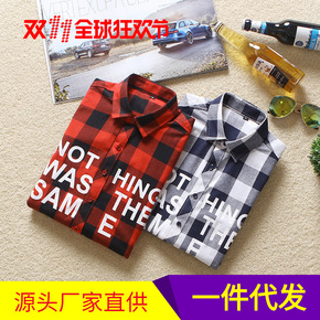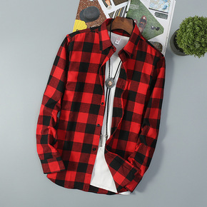秋冬季格子衫男港风日系长袖衬衫韩版潮流帅气中学生得...