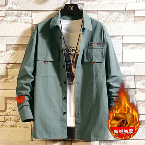 高品质秋冬加绒加厚保暖衬衫男长袖休闲大码衬衣外套爸...