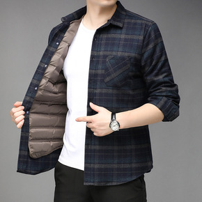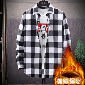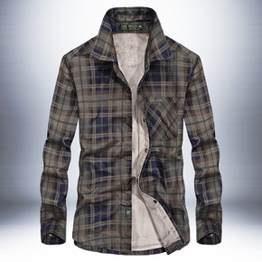 秋冬男士长袖保暖加绒加厚衬衫格子外套印花衣服男爸爸...