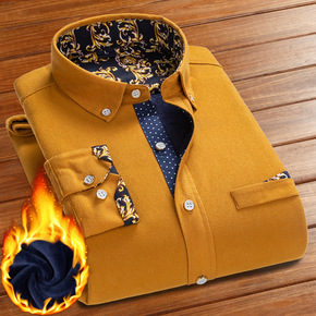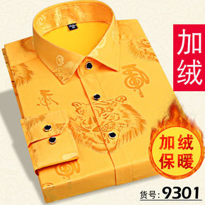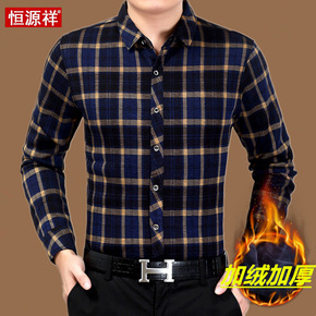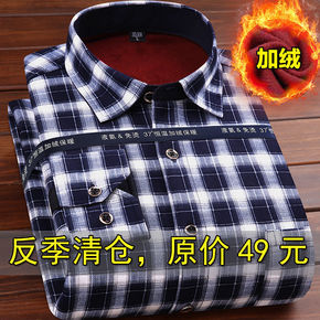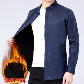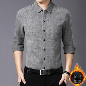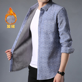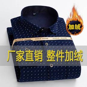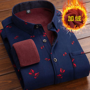 冬季加绒保暖衬衫男长袖衬衣加厚休闲印花中年男士寸衫...