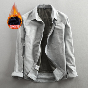 【高品质】冬季加绒加厚灯芯绒保暖长袖衬衫时尚休闲大...