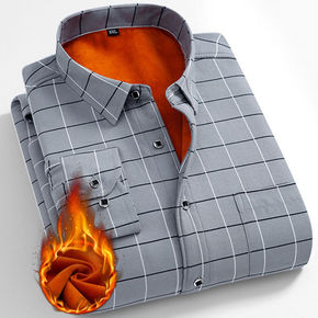 秋冬季男士加绒加厚保暖衬衫长袖中老年格子印花衬衣休...