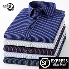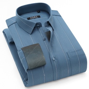 冬季加绒加厚男士保暖衬衫男爸爸装中年商务款条纹衬衣...