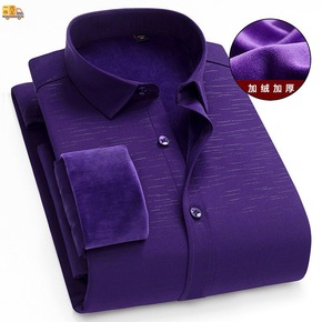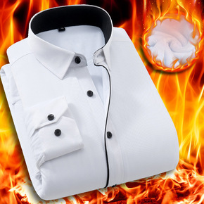 秋冬季加绒保暖长袖衬衫男士商务正装韩版潮流宽松加厚...
