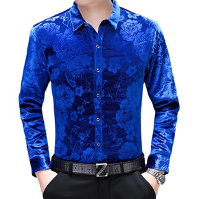 2022冬季新款男金丝绒加绒加厚时尚修身衬衫潮流男...