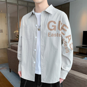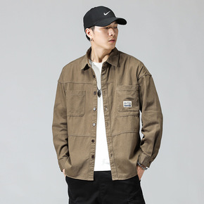 纯色衬衫男港风日系长袖春季潮流工装衬衣设计感外套痞...